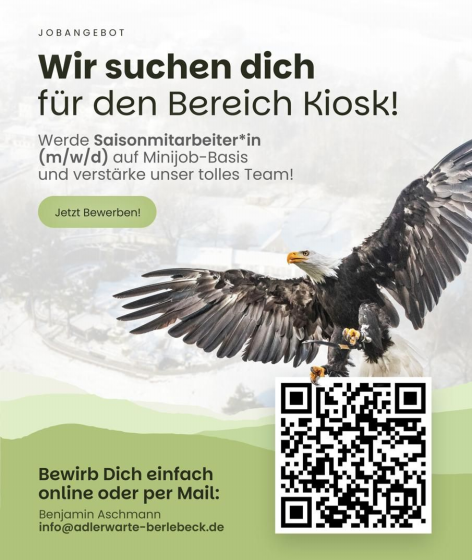 Wir öffnen auch in der Winterpause 2025/2026 an einigen Tagen und sind telefonisch montags bis freitags, von 09:00 - 14:00 Uhr, erreichbar: